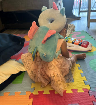„Dieses Kissen bietet echten Schutz, ohne meine Tochter zu stören. Juliette spielt überall und selbst wenn sie hinfällt, tut es ihr nicht weh. Ich kann es wärmstens empfehlen.“